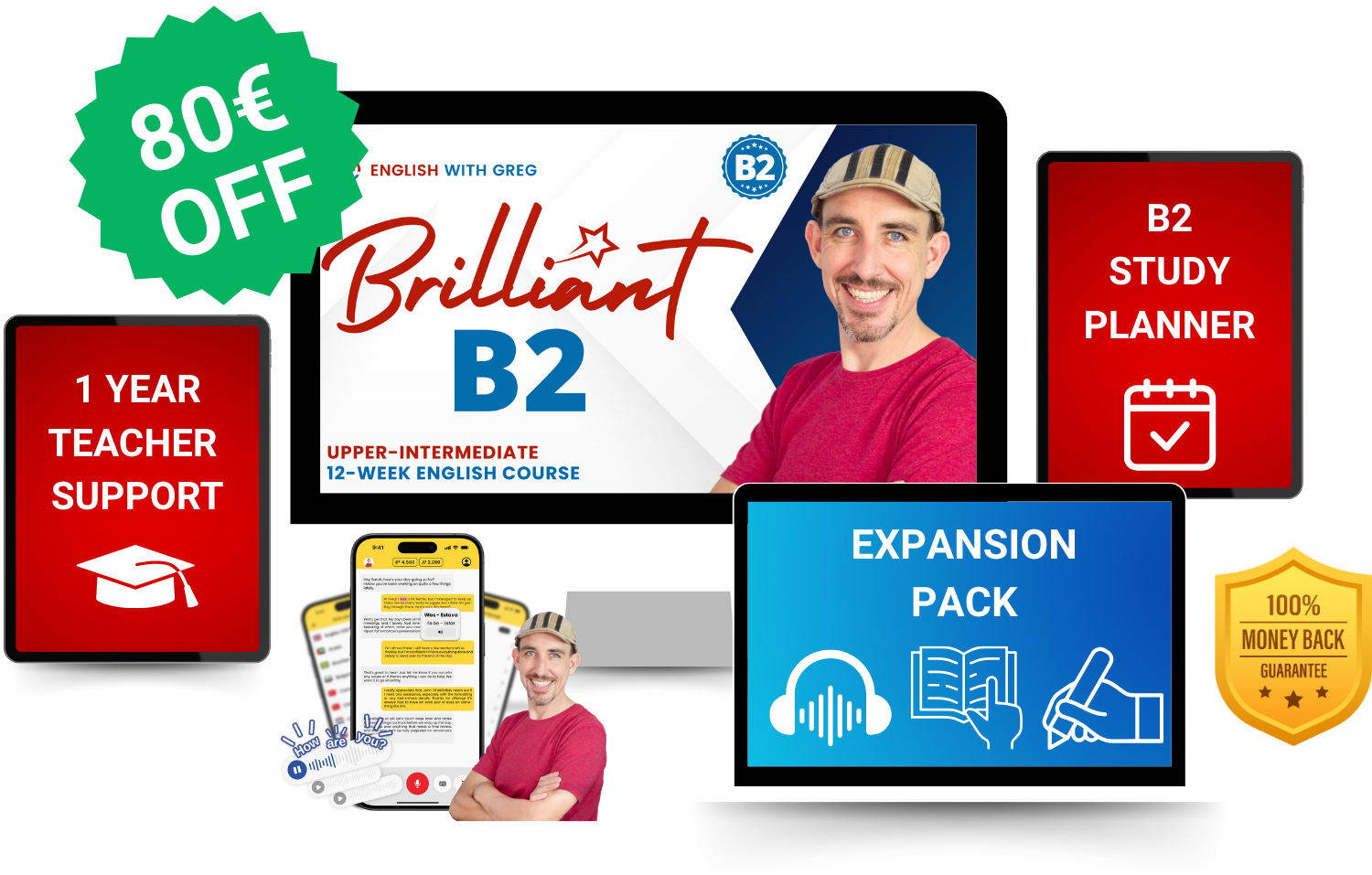 I do love Greg's easily understandable and straightforward way of teaching. His "Brilliant B2" course is amazingly structured with crystal clear explanations, unique tools, lots of super useful challenging homework, and fantastic, very useful feedback as well. I'm loving it! I recommended it to a few friends of mine, and they are 100% satisfied."